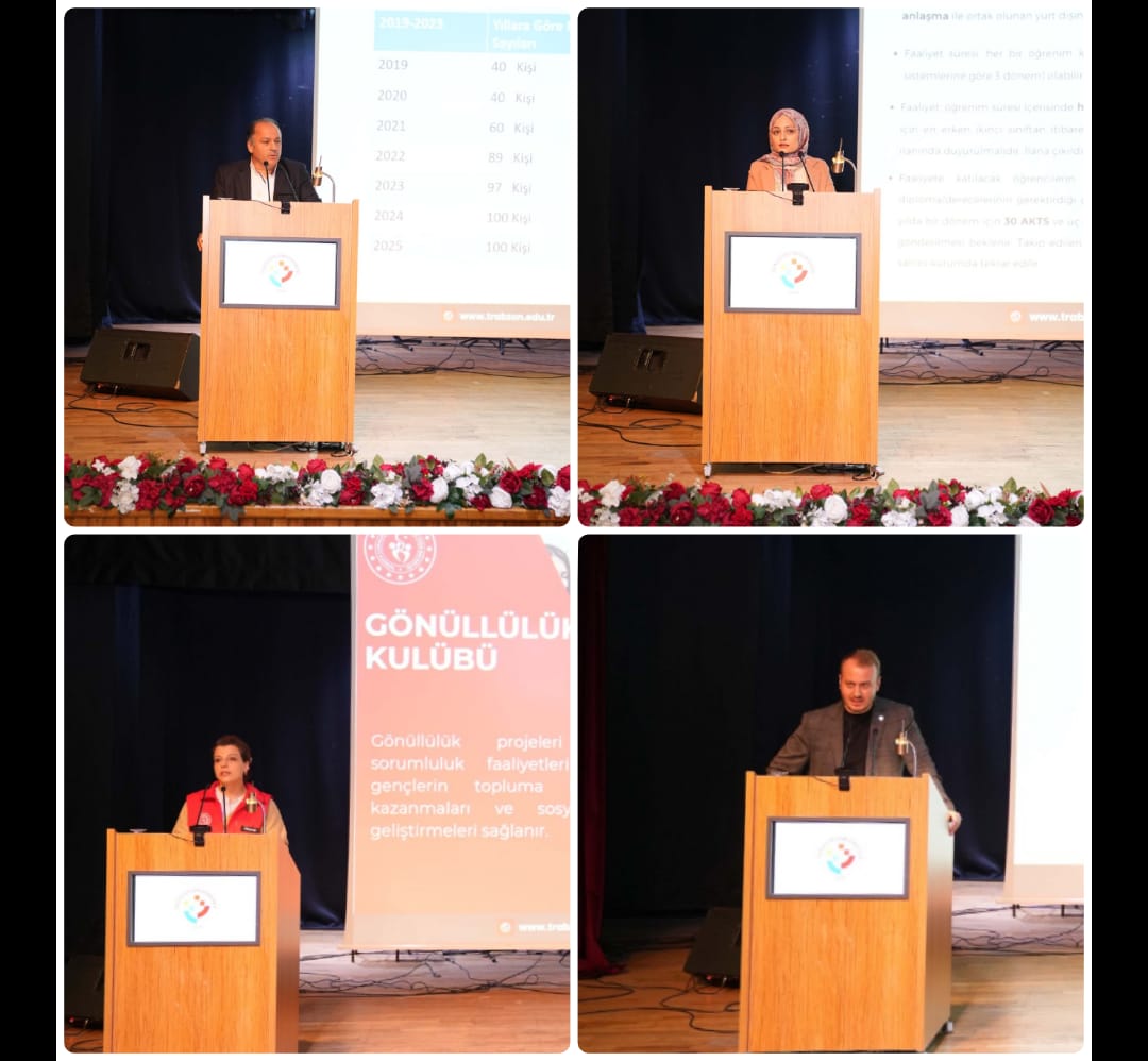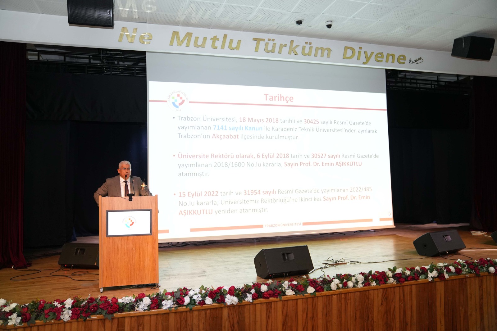 “Bu yıl 81 ilimizin 80’inden toplam 2 bin 300 yeni öğrencimiz aramıza katıldı. Ayrıca yabancı uyruklu 101 öğrencimiz var. Trabzon Üniversitesi olarak gururluyuz. Güven duyup sizleri bize emanet eden ailelerinize teşekkür ediyoruz. Biz 2018 yılında kurulmuş genç bir üniversiteyiz. Ancak kökleri çok eskilere dayanan bir üniversiteyiz. 2025-2026 Eğitim-Öğretim Yılı Uyum Programımızın uygulanmasıyla birlikte karşılaşabileceğiniz, ihtiyaç duyabileceğiniz, danışabileceğiniz, merak edebileceğiniz her konuda sizlere yol ve yöntem gösterilecektir. Sizlerle birlikte sağlıklı, verimli, uyumlu ve başarılı bir yükseköğrenim dönemi geçirmeyi diliyoruz.”